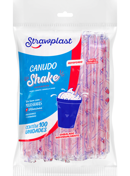 Canudo Biodegradável Flexível "It's Bio" Shake 8MM Sachê Strawplast (100 unidades)